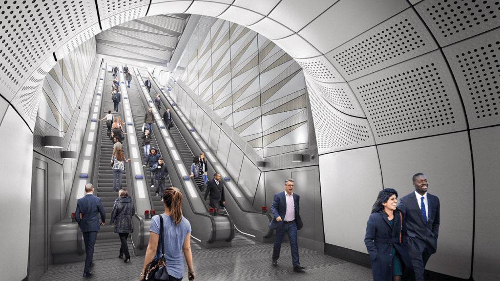 The Elizabeth line wasn’t just a huge engineering project; it was London’s biggest ever archaeological projects. The new stations are clean, airy, and modern. This is Farringdon station, a major London hub, with connections to the Underground, north and south via Thameslink, easy access to mainline stations Kings Cross and St. Pancras International, and direction connections to Heathrow, Gatwick, and Stansted airports.