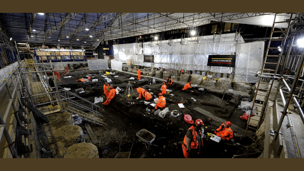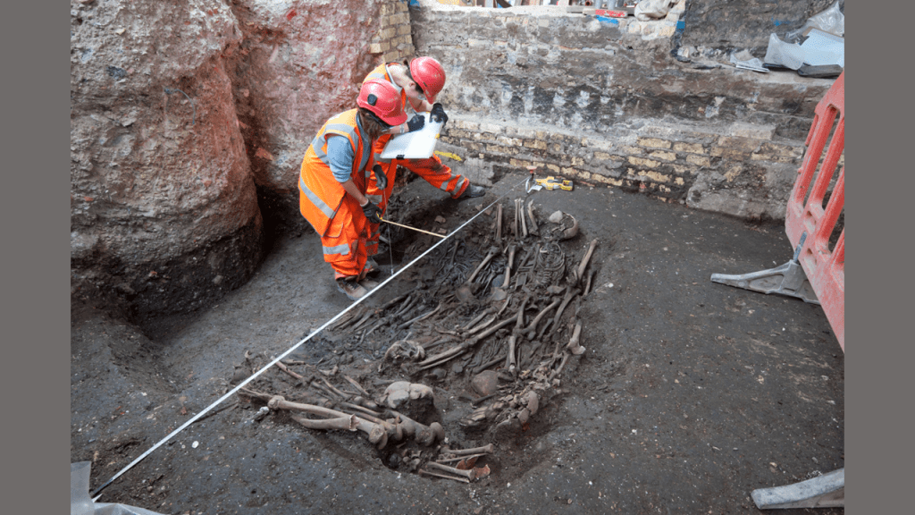 Sometimes it’s a graveyard full of seventeenth-century plague victims, like this one excavated at the new entrance to the Elizabeth Line’s Liverpool Street station.