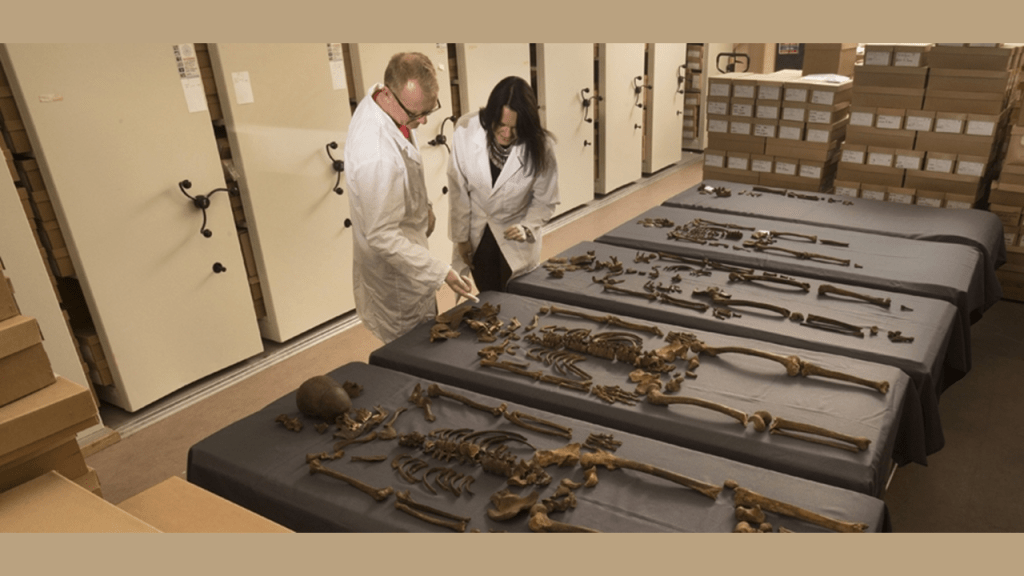 Excavations were carried out by MOLA, the Museum of London Archaeology. Teeth were tested for the DNA of Yersinia pestis, the bacterium that causes bubonic plague. Various other analyses investigated the diet and health of the people buried here.